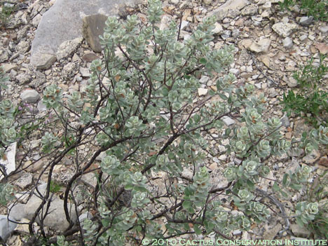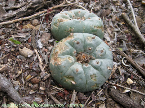 Plant growing with a Lophophora williamsii var. echinata population in West Texas.