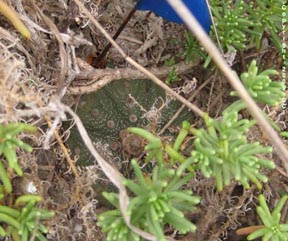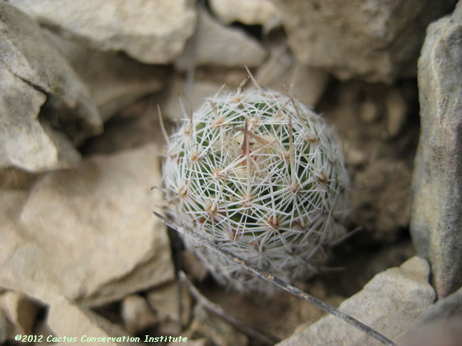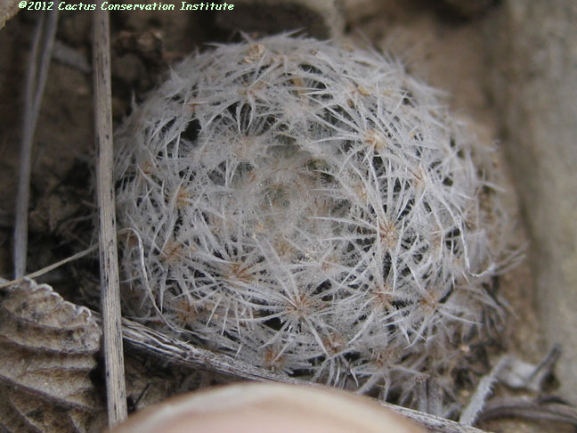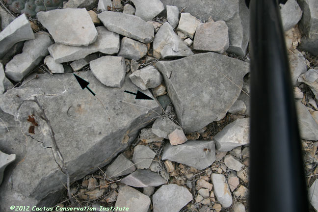 The rock protecting the seedling above was carefully replaced following its examination. Mammillaria