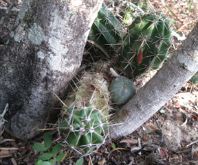 The young plants on the right and almost hidden in the upper left above are devoid of central spines.