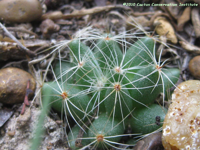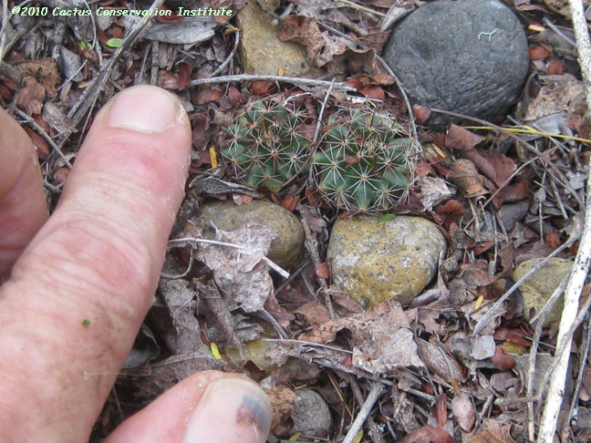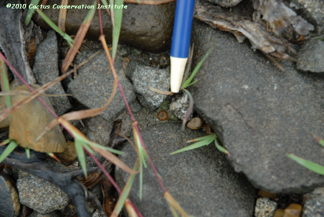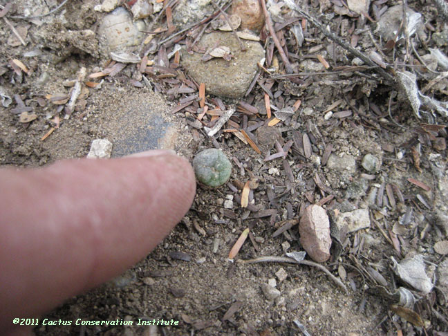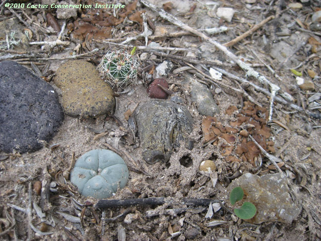 The Lophophora seedling in the first row above was noticed only when accidently uncovered. Mammillaria heyderi Jim Hogg County, Texas