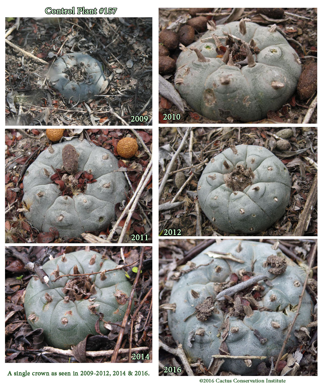 on the same Lophophora williamsii in 2016.